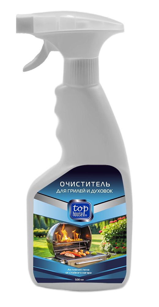 House очиститель для грилей и духовок 500 млВысокощелочное средство для удаления жира, копоти и нагара с грилей, барбекю, шампуров, жаровен, духовок, противней и варочных поверхностей. Активная пена дольше остается на вертикальной поверхности.