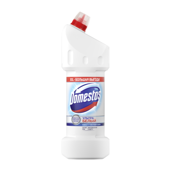 Доместос ультра белый чистящее средство для туалета антибактериальный эффект 1500 млЧистящее средство для туалета Ультра Белый поможет обеспечить чистоту и гигиену унитаза, устранение неприятных запахов, удаление плесени и мыльного осадка, антимикробную обработку малых поверхностей и предотвращение появления известкового налета. Доместос гель для унитаза оснащен удобным семиструйным дозатором, который помогает равномерно и экономно наносить средство на нужную поверхность. Чистящее средство для туалета Доместос Ультра Белый: -уничтожает бактерии, плесень, грибки, вирусы и споры; -помогает устранить неприятные запахи; -помогает предотвращать появление известкового налета; -отбеливает фаянсовые поверхности; -обладает густой экономичной формулой и оснащен 7-струйным дозатором; -используется в разбавленном или неразбавленном виде. Доместос чистящее средство для унитаза Ультра Белый оснащен специальном колпачком от открывания детьми. Чтобы открыть, надавите на уплотнения по бокам колпачка и поверните против часовой стрелки. Чтобы закрыть, поверните колпачок по часовой стрелке до щелчка.
