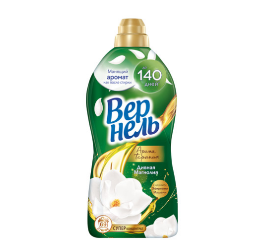 Вернель арома дивная магнолия кондиционер для белья 1,74 лКонцентрированный кондиционер для белья Вернель Ароматерапия Дивная магнолия подарит Вашему белью не только невероятную мягкость, но и волшебный аромат лотоса, а благодаря специальным аромакапсулам в составе кондиционер для стирки Вернель позволит наслаждаться интенсивным ароматом белья до 140 дней.