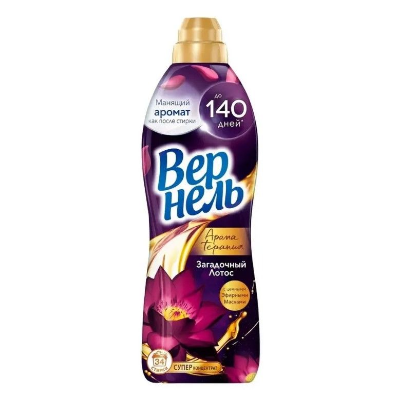 Вернель арома пион загадочный лотос кондиционер для белья 870 млКонцентрированный кондиционер для белья Вернель Ароматерапия Загадочный лотос подарит Вашему белью не только невероятную мягкость, но и магический аромат лотоса, а благодаря специальным аромакапсулам в составе кондиционер для стирки Вернель позволит наслаждаться интенсивным ароматом белья до 140 дней.
