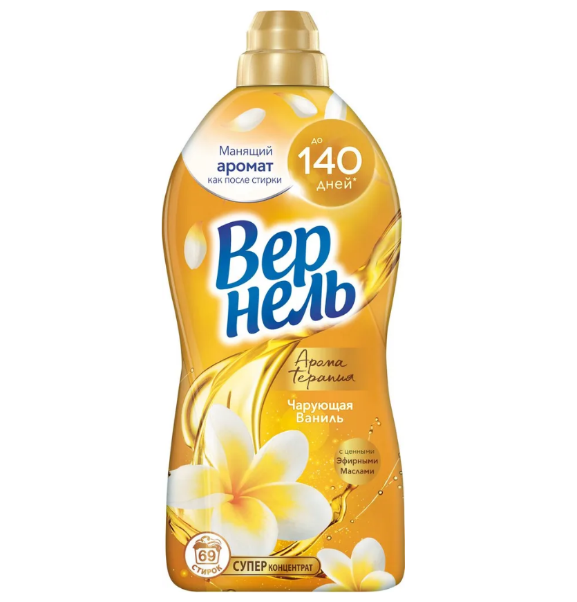 Вернель арома чарующая ваниль кондиционер для белья 1,74 лКонцентрированный кондиционер для белья Вернель Ароматерапия Чарующая ваниль подарит Вашему белью не только невероятную мягкость, но и магический аромат сладких цветков ванили, а благодаря специальным аромакапсулам в составе кондиционер для стирки Вернель позволит наслаждаться интенсивным ароматом белья до 140 дней.
