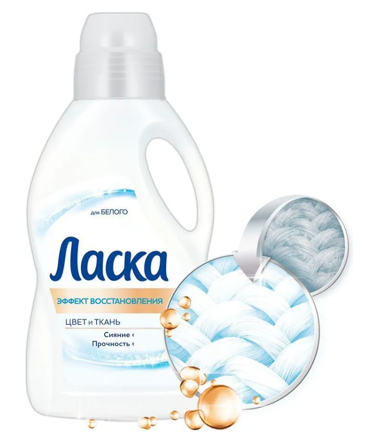 Ласка жидкость для стирки восстановление белого 3D 1лГель для стирки Ласка Эффект Восстановления для Белого, жидкое средство для стирки специально разработано для активного ухода за Вашей одеждой белых и светлых цветов и поддержания первозданной красоты вещей стирка за стиркой. Специальная формула жидкого средства для стирки Ласка не только бережно отстирывает загрязнения, но и отлично заботится о Вашей одежде в двух ключевых направлениях: сияние белого цвета и прочность ткани.Выделяйтесь в ослепительном белом цвете и превосходной форме с гелем для стирки Ласка для Белого!ПРЕИМУЩЕСТВА ЖИДКОГО СРЕДСТВА ДЛЯ СТИРКИ ЛАСКА:- гель для стирки защищает яркость белых и светлых вещей, предотвращая появление серого оттенка- жидкое средство для стирки сохраняет форму ткани, поддерживая эластичность волокон- гель для стирки обеспечивает эффект восстановления ткани (способствует сохранению прочности ткани).