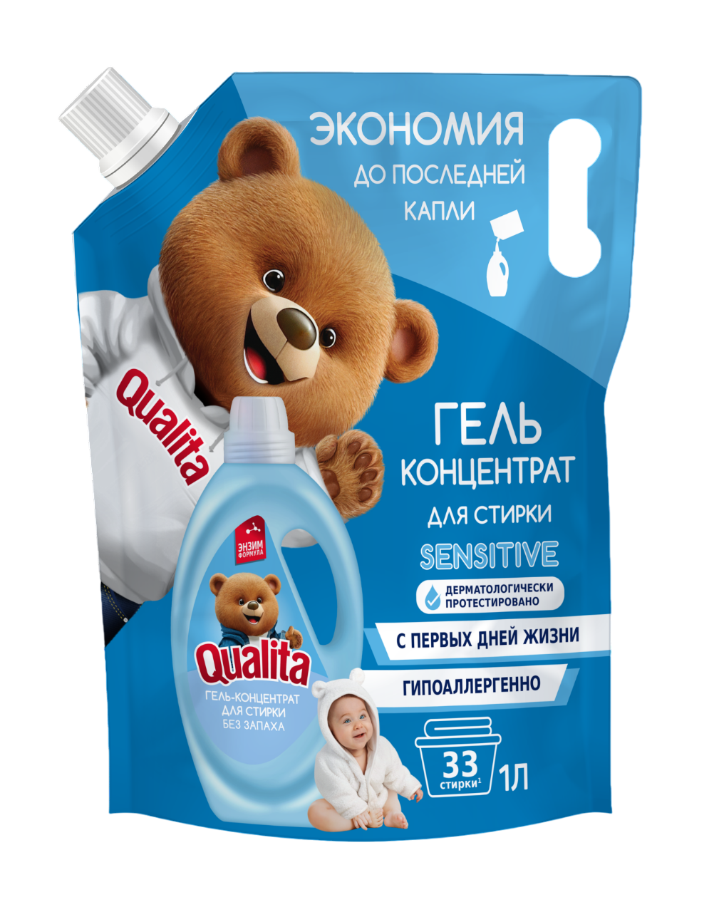 Qualita гель для стирки универсальный без запаха дой пак 1000 мл