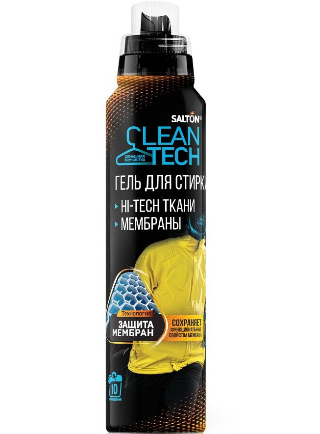 Salton clean tech гель для стирки изделий из мембранных тканей 500 млОдежда из мембранной ткани выручит в любую погоду: спасёт от дождя, послужит хорошей защитой от ветра, позволит коже летом дышать. Но уход обычными средствами может их испортить. Чтобы такие вещи служили долго, нужны специальные средства для стирки мембраны и спортивных вещей.Гель для стирки мембраны Salton CleanTech разработан для безопасного очищения изделий из мембранных и других высокотехнологичных тканей (ветровки, куртки, спортивная одежда, микрофибра, термобелье, спандекс, GoreTex). Средство для стирки мембраны Salton CleanTech содержит уникальную технологию ЗАЩИТА МЕМБРАН, которая сохраняет функциональные свойства мембранных тканей - после стирки ткань сохранит прежние надежные качества для вашей защиты. Средство для стирки мембранной одежды убережёт волокна ткани от глубокого проникновения загрязнений. Наконец, то, о чем вы мечтаете - водонепроницаемые и дышащие функции технологичных тканей останутся такими же, как при покупке. Смело отправляйтесь в поход, за город или просто покорять городские маршруты в любую погоду.