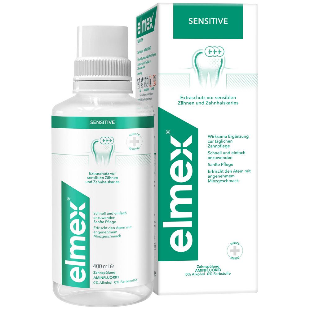 Elmex сенситив ополаскиватель для полости рта для снижения чувствительности зубов 400 млОполаскиватель для полости рта elmex Сенситив предназначен для ежедневной гигиены. Обеспечивает дополнительную защиту от повышенной чувствительности зубов и пришеечного кариеса. Высокоэффективный аминофторид, входящий в состав ополаскивателя, защищает зубы от кариеса, замедляет рост бактерий, образующих зубной налет. Ополаскиватель для полости рта elmex Сенситив помогает очистить участки зубов, труднодоступные для зубной щетки. Особенно рекомендован при наличии ортодонтических конструкций (брекет-систем и пр.), несъемных и частично съемных зубных протезов.