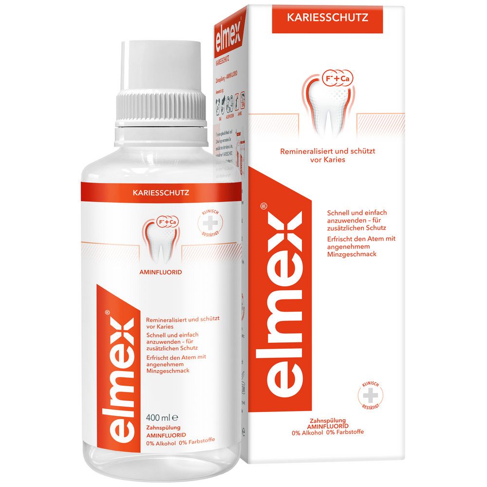 Elmex ополаскиватель для полости рта защита от кариеса 400 млОполаскиватель для полости рта elmex Защита от кариеса предназначен для ежедневной гигиены. Высокоэффективный аминофторид, входящий в состав ополаскивателя, защищает зубы от кариеса, замедляет рост бактерий, образующих зубной налет. Ополаскиватель elmex Защита от кариеса способствует укреплению зубной эмали, снижает ее растворимость и стимулирует процессы реминерализации. Ополаскиватель для полости рта elmex Защита от кариеса помогает очистить участки зубов, труднодоступные для зубной щетки. Особенно рекомендован при наличии ортодонтических конструкций (брекет-систем и пр.), несъемных и частично съемных зубных протезов.
