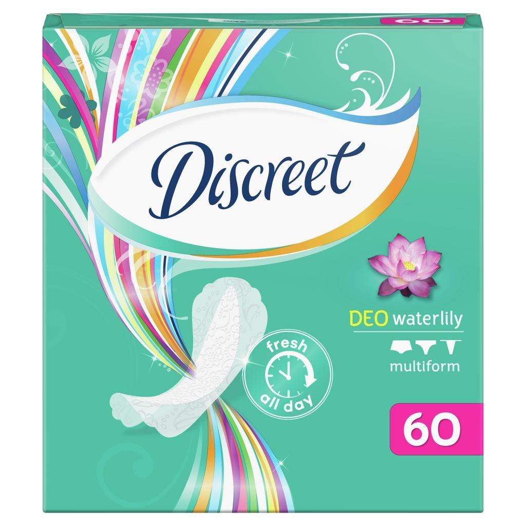 Discreet део водная лилия мультиформа 60 штЕжедневные гигиенические прокладки Discreet Multiform Водная лилия не только дарят ощущение свежести, но и помогают всем девушкам чувствовать себя красивыми! Эти ежедневные гигиенические прокладки позволяют коже дышать, обеспечивая свежесть и комфорт до 12 часов. Они настолько тонкие, что вы их даже не почувствуете, и, кроме того, их особая форма подойдет для любого белья. Фирменный аромат водной лилии дарит ощущение свежести и женственности. С этими прокладками вы будете ощущать свежесть в течение всего дня, в любой ситуации!