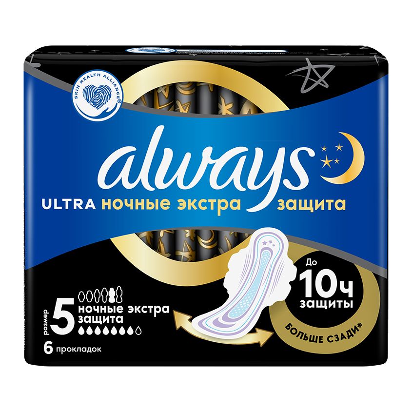 Always ультра найт экстра защита ароматизированные 6 штНаслаждайтесь спокойным сном благодаря тройной защите: гигиенические прокладки ALWAYS Ultra Secure Night (ночные экстра защита) с крылышками обеспечивают тройную защиту от протеканий и необходимости менять прокладку ночью. Обеспечьте себе наилучшую защиту с помощью Always My fit — специальной системы определения размера, которая помогает правильно подобрать прокладку на основании количества выделений и размера трусиков