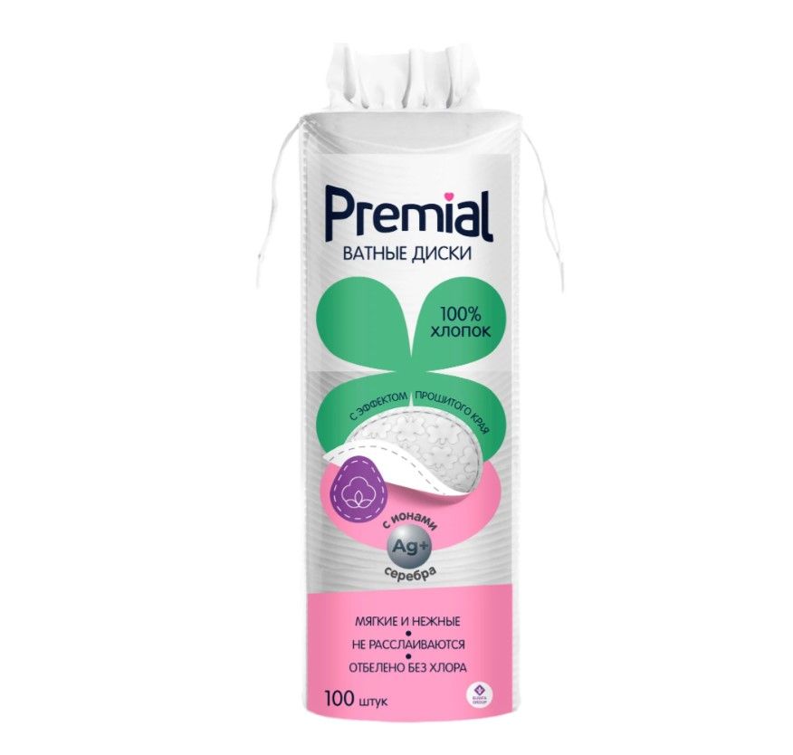 Premial classic ватные диски 100 штPREMIAL ватные диски особо мягкие и нежные, состоят из 100% хлопка. Плотная структура диска обеспечивает высокую впитываемость, позволяет деликатно и нежно очищать кожу, не вызывая травмирования. Диски Premial изготавливаются из полотна высочайшего качества, которое отбеливается без хлора. Благодаря технологии «Water Jet» (полировка водой) достигается эффект «прошитого края», который на 100% исключает расслаивание. Тончайший нано-слой ионов серебра придает антибактериальные свойства!