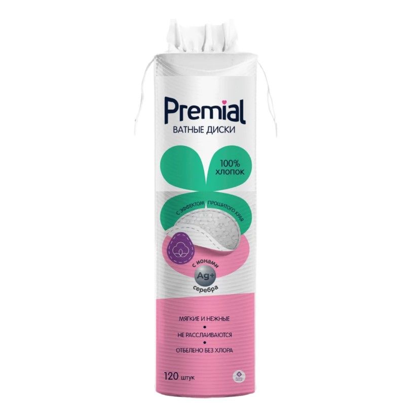 Premial classic ватные диски 120 штPREMIAL ватные диски особо мягкие и нежные, состоят из 100% хлопка. Плотная структура диска обеспечивает высокую впитываемость, позволяет деликатно и нежно очищать кожу, не вызывая травмирования. Диски Premial изготавливаются из полотна высочайшего качества, которое отбеливается без хлора. Благодаря технологии «Water Jet» (полировка водой) достигается эффект «прошитого края», который на 100% исключает расслаивание. Тончайший нано-слой ионов серебра придает антибактериальные свойства!
