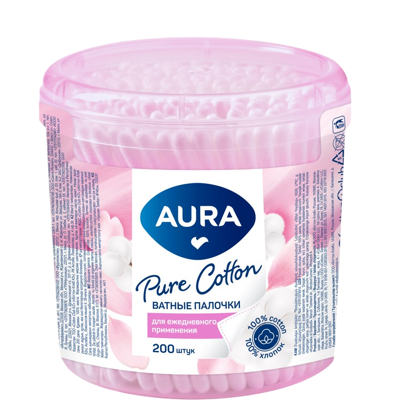 Aura ватные палочки 200 шт стаканВатные палочки Aura предназначены для косметических и гигиенических целей. Ватная головка сделана из 100% хлопка, который отлично впитывает влагу и не оставляет ворсинок. Эластичный пластиковый стик на котором прочно закреплен хлопок обеспечивает мксимально комфортное использование. Палочки гипоаллергенны, хорошо удаляют загрязнения, подходят для нанесения и снятия макияжа.