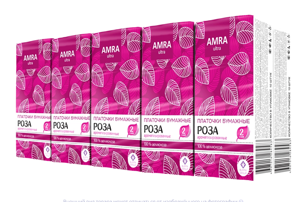 Amra платочки бумажные двухслойные белые с ароматом розы 1 уп по 10 шт