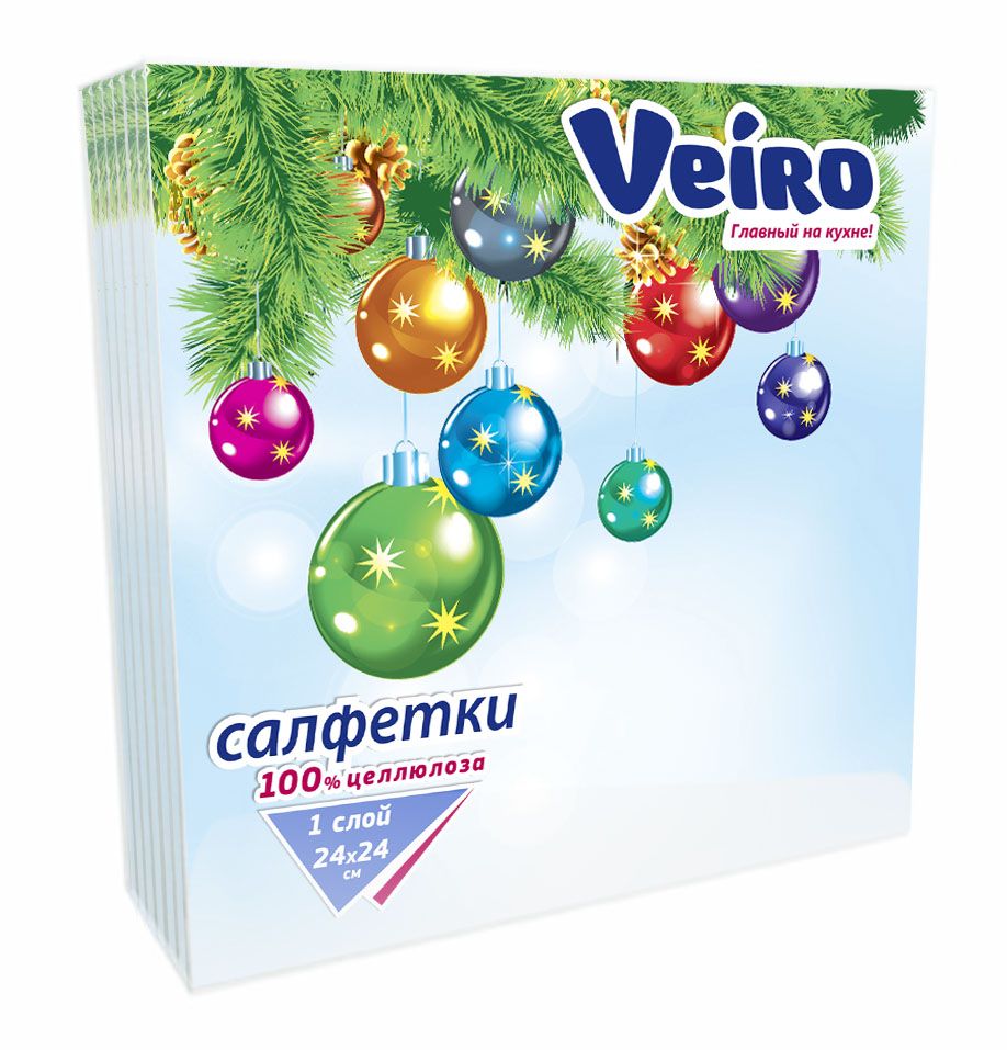 Veiro салфетки 3 слойные с рисунком ветка с шарами 33*33 20 листовСалфетки сервировочные размером 33*33мм трёхслойные ТМ VEIRO с многокрасочным рисунком Ветка с шарами, изготовлены из 100% целлюлозы согласно ГОСТ Р 52354-2005