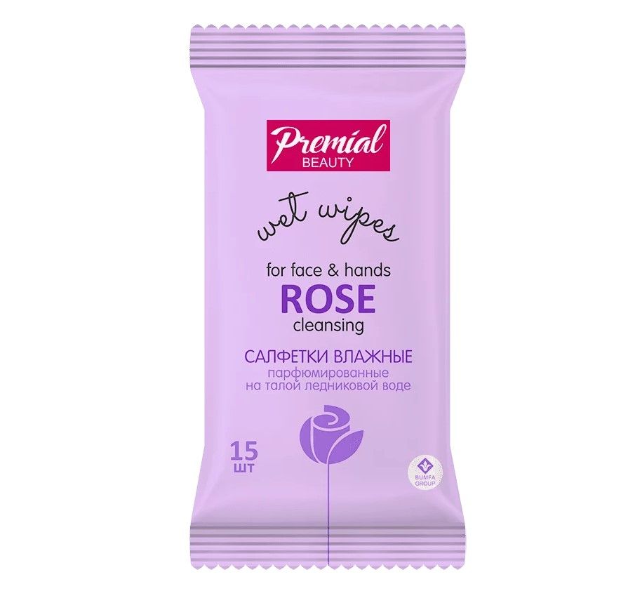 Premial салфетки влажные очищающие роза 15 шт