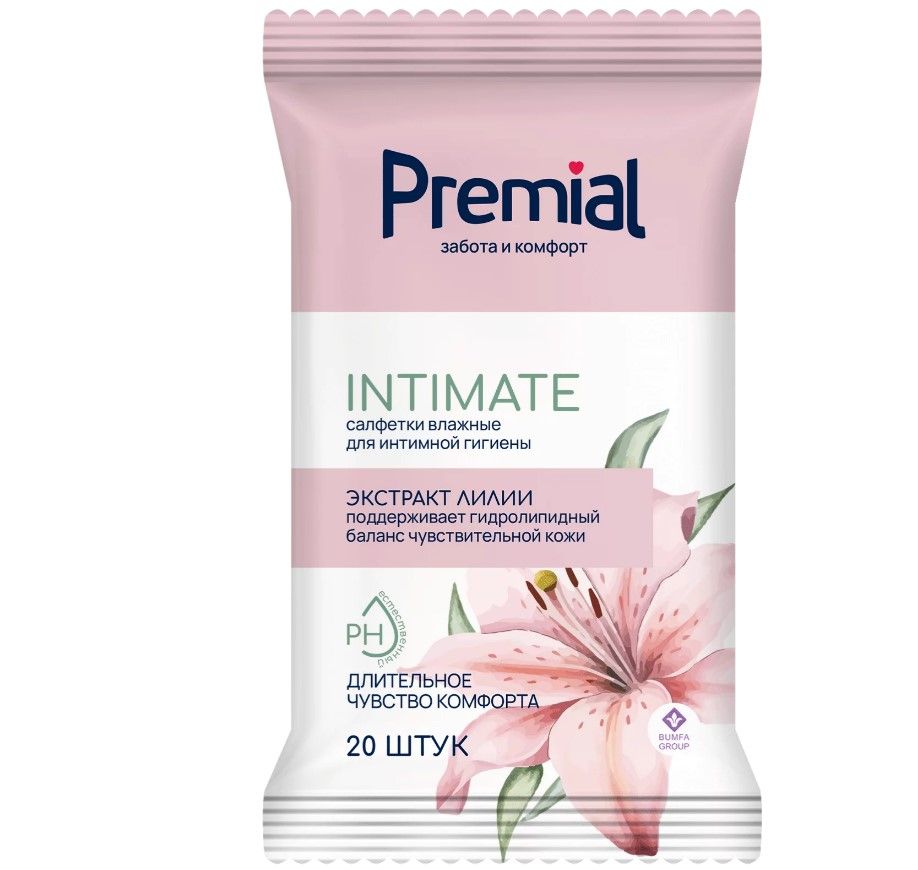 Premial салфетки влажные для интимной гигиены с экстрактом лилии женские 20 шт