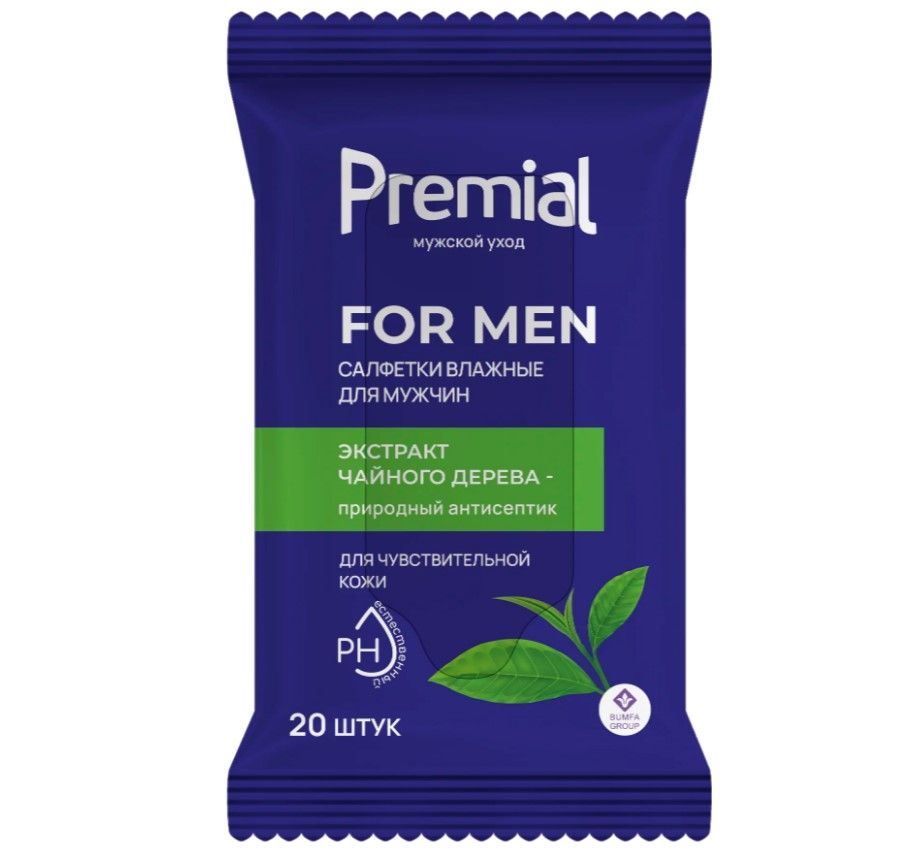 Premial салфетки влажные для интимной гигиены мужские 20 шт