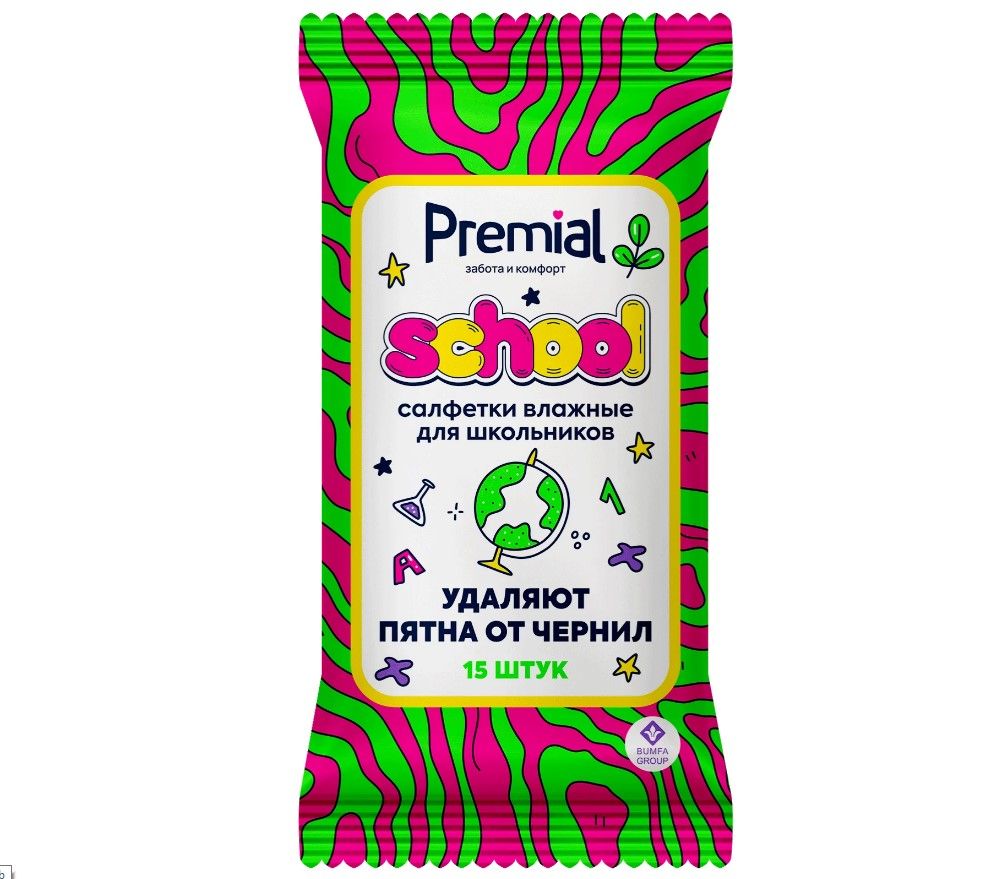 Premial салфетки влажные для школьников 15 шт
