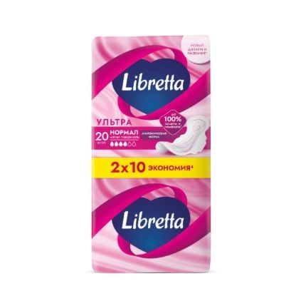 Libretta ультра нормал прокладки гигиенические 20 штНаши прокладки с мягкой поверхностью и анатомической формой обеспечивают до 100% защиты и комфорта1, чтобы ты чувствовала себя в гармонии со своим телом в “эти дни”.