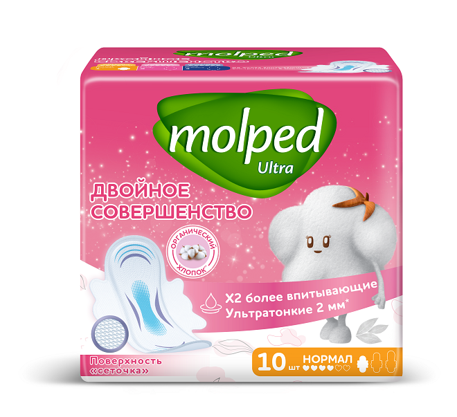 Molped ультратонкие прокладки ultra с крылышками нормал 10 штИспользуются для женской гигиены.