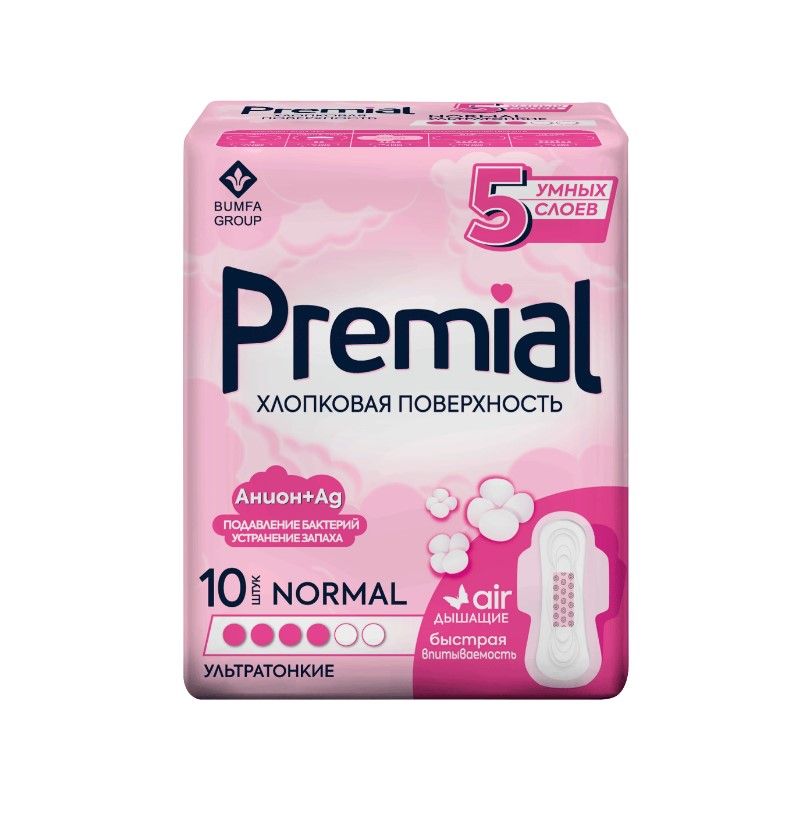 Premial прокладки женские гигиенические с крылышками normal wings хлопковая поверхность 10 шт