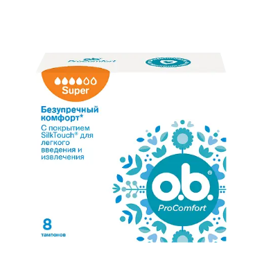 O.B. тампоны procomfort супер 8 шт стикер johnson & johnsonТампоны o.b. ProComfort разработаны таким образом, что объединяют в себе технологию спиралевидных желобков для надежной защиты и уникальное шелковистое покрытие SilkTouch для комфортного введения. Благодаря шелковистому покрытию SilkTouch тампон легко скользит, обеспечивая легкое и мягкое введение