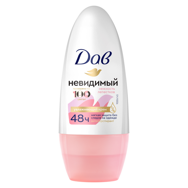 Дав део шарик невидимый нежность лепестков 50 мл-Эффективно защищает от пота на 48 часов -Не содержит этилового спирта -Не оставляет белых следов на одежде* -На ¼ состоит из увлажняющего крема -Не тестируется на животных Dove антиперспирант-дезодорант роликовый Невидимый Нежность лепестков для женщин без этилового спирта с рецептурой, содержащей полупрозрачные микрочастицы, не оставляет белых следов на одежде и обеспечивает эффективную защиту от пота и запаха на 48 часов. Женский дезодорант-антиперспирант роликовый Dove Невидимый Нежность лепестков от пота на ¼ состоит из увлажняющего крема и содержит Helianthus Annuus Seed Oil (масло семян подсолнечника), обладающее увлажняющими и регенерирующими свойствами, помогающими от раздражения после бритья. Компания Dove уверена, что красота должна быть источником уверенности в себе, а не беспокойства. Поэтому Dove женский антиперспирант-дезодорант роликовый Невидимый Нежность лепестков не оставляет следов на одежде и помогает женщинам жить полной жизнью, не чувствуя стеснения из-за пота, запаха или раздражения на коже подмышек.