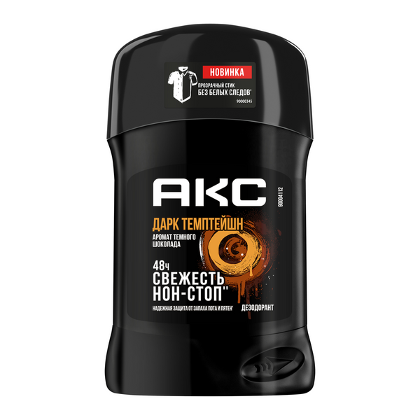 Акс дезодорант мужской твердый стик карандаш дарк темптейшн защита от запаха пота 48 часов 50 млДезодорант мужской твердый Акс Дарк Темптейшн создан специально для крутых парней, которым важна полная уверенность в себе. Дезодорант Акс мужской имеет топовый* аромат шоколада, разработанный в сотрудничестве с одной из лучших мировых парфюмерных команд. Дезодорант- карандаш не оставляет белых следов' на одежде. Парфюмированный дезодорант мужской ежедневно обеспечивает желанную свежесть коже подмышек, защищая от запаха пота даже в активные дни. Мужской дезодорант твердый разработан на основе цветной полупрозрачной формулы, которая включает в себя два основных компонента. Это надежная защита от запаха пота на 48 часов** и топовый* шоколадный аромат. Темный шоколад невероятно притягателен, он заряжает на победу, привлекая к тебе нужное внимание. Дезодорант-стик мужской Акс высыхает всего за 1–2 минуты после нанесения. Твердый дезодорант мужской имеет специально подобранный выраженный щелочной рН, который предотвращает размножение бактерий - главной причины неприятного запаха. При этом средство от запаха пота на водной основе не вызывает покраснений, раздражений, кожного зуда***. Акс дезодорант мужской подходит для подростков с 14 лет. Дезодорант твердый мужской дерматологически протестирован.