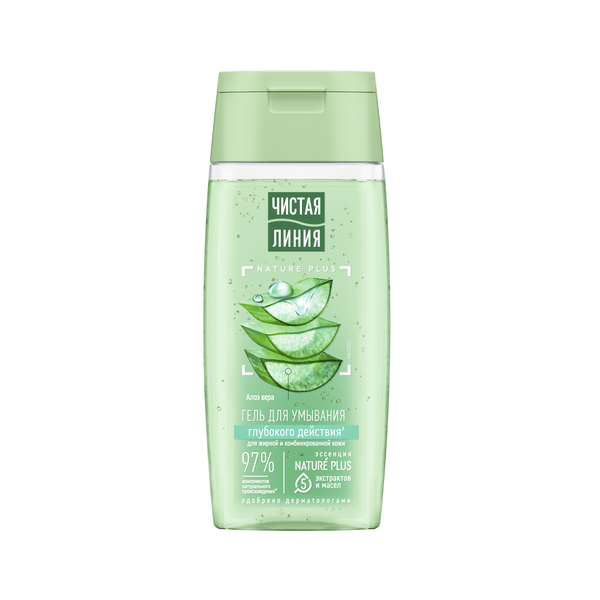 Чистая Линия гель для умывания глубокого действия для жирной и комбинированной кожи алое вера 100 млВстречайте гель для умывания от Чистой Линии с усиленной формулой1 и в обновленном дизайне! Полноценный уход за лицом начинается с умывания, подходящего именно вашему типу кожи. Гель для умывания глубокого действия' от экспертов бренда Чистая Линия содержит 97% компонентов натурального происхождения* и разработан с учетом потребностей жирной и комбинированной кожи. В центре формулы геля – эссенция из пяти экстрактов и масел NATURE PLUS (экстракт вербены, экстракт пиона, масла миндаля, льна, оливы), а также сок алоэ вера. Активные натуральные компоненты качественно освежают и тонизируют кожу: - Экстракт вербены восстанавливает баланс увлажненности и тонизирует; - Экстракт пиона и льняное масло успокаивают и смягчают. Масло миндаля содержит жирные кислоты, витамины Е и F, питает и выравнивает поверхность кожи; - Ферментированное оливковое масло питает и защищает от преждевременного старения; - Алоэ вера успокаивает, увлажняет и тонизирует, стимулирует обновление клеток, оказывая омолаживающее действие. Результат: естественно красивая, матовая кожа.