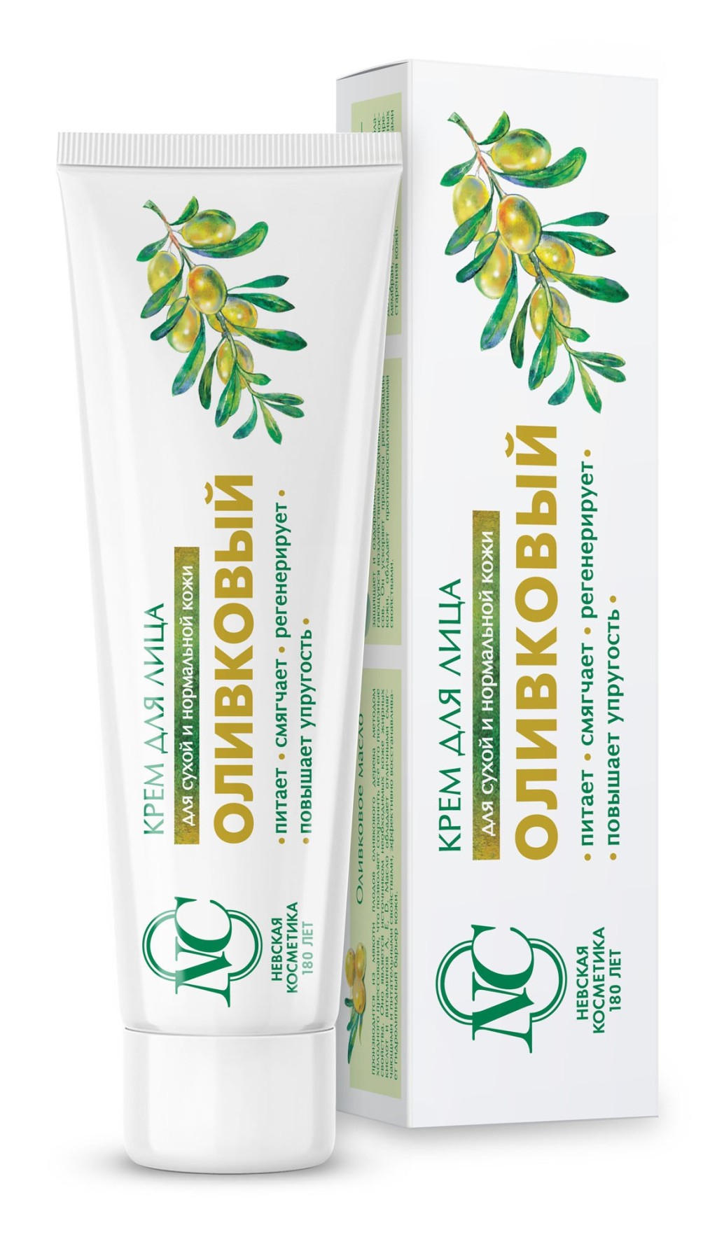 Невская Косметика оливковый крем для лица 40млКрем разработан как эффективное средство для ежедневного ухода за сухой и нормальной кожей лица. Оливковое масло обладает отличными смягчающими и питательными свойствами, эффективно восстанавливает гидролипидный барьер кожи. Альфа-бисаболол — основной активный ингредиент медицинской ромашки. Бисаболол защищает и оздоравливает кожу, подвергающуюся воздействиям ежедневных стрессов. Он ускоряет процессы регенерации кожи, обладает противовоспалительными свойствами.