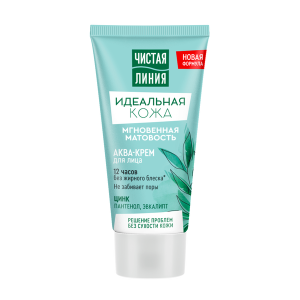 Чистая Линия идеальная кожа аква крем для лица мгновенная матовость с цинком и эвкалиптом 50 млСтремишься к идеальной матовой коже? Новая формула невесомого увлажняющего аква-крема Мгновенная матовость от бренда Чистая Линия поможет тебе сохранить кожу бархатистой и матовой в течение всего дня.* Крем имеет легкую приятную структуру и моментально впитывается, увлажняет 24 часа и не закупоривает поры.* Аква-крем содержит активные компоненты, тщательно отобранные экспертами бренда Чистая Линия для эффективного воздействия на кожу: - Цинк регулирует выработку себума, обладает противовоспалительным действием; - Экстракт эвкалипта очищает и успокаивает кожу; - Пантенол смягчает и восстанавливает; - Аллантоин обеспечивает увлажняющее и успокаивающее действие; - Витамин B3 участвует в клеточном метаболизме, сокращает несовершенства и улучшает внешний вид кожи; - Глицерин поддерживает оптимальный уровень увлажненности кожи. В серии Идеальная кожа от бренда Чистая Линия ты найдешь все, что нужно для чистой и здоровой кожи. Гель для умывания глубокого действия' очищает кожу, предотвращая появление несовершенств. Крем Мгновенная Матовость надолго устраняет жирный блеск и увлажняет кожу на 24 часа.*