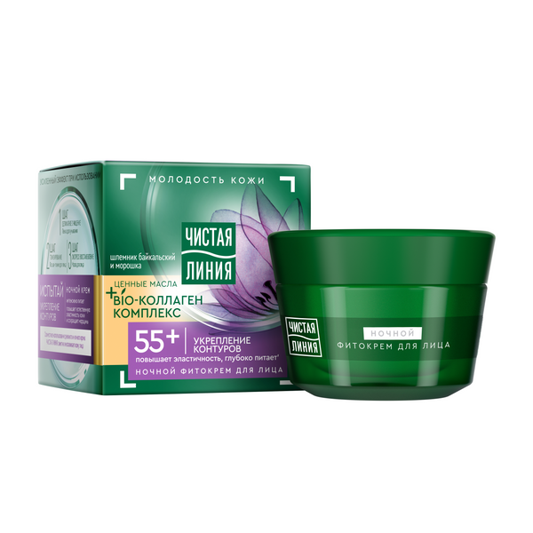 Чистая Линия ночной фитокрем для лица укрепление контуров bio коллаген 55+ лет шлемник байкальский и морошка 45 мл