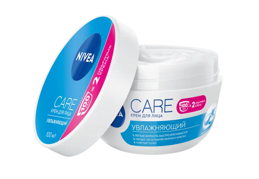 Nivea крем дневной для лица увлажнение и питание 100 млУвлажняющий крем Care для всех типов кожи от NIVEA с маслом дерева ши увлажняет на 24+ часа без ощущения липкости и жирного блеска на коже. Инновационая формула подготавливает кожу к нанесению макияжа, смягчая и разглаживая ее. Кожа выглядит заметно более здоровой и сияющей. Крем быстро впитывается благодаря легкой текстуре.