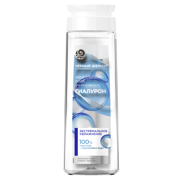 Черный Жемчуг мицеллярная вода для лица век и губ экстремальное увлажнение с гиалуроном 250 млЧистая и ухоженная кожа начинается с качественного очищения. Эксперты бренда Черный Жемчуг разработали мицеллярную воду для лица, век и губ, которая бережно снимает макияж, очищает кожу и обеспечивает ей уход. Продукт содержит чистый гиалурон и ледниковую воду для экстремального увлажнения кожи и насыщения ее необходимыми микроэлементами во время очищения. Чистый гиалурон восстанавливает водный баланс кожи и поддерживает уровень увлажнения, необходимый коже. Благодаря его способности эффективно притягивать молекулы воды, он способствует накоплению и удержанию влаги в слоях кожи*. Ледниковая вода, микробиологически чистая и обогащенная микроэлементами Ca2+, Mg2+, K+, глубоко* восстанавливает кожу, успокаивает и освежает. Мицеллярная вода насыщает кожу влагой, а влагоудерживающие компоненты не дают ей испаряться с поверхности кожи. Свойства мицеллярной воды подтверждены потребительским тестированием: 95% респондентов отметили, что средство полностью удаляет макияж; 87% – действует нежно, без раздражения и дискомфорта; 87% – успокаивает и ухаживает за кожей**.