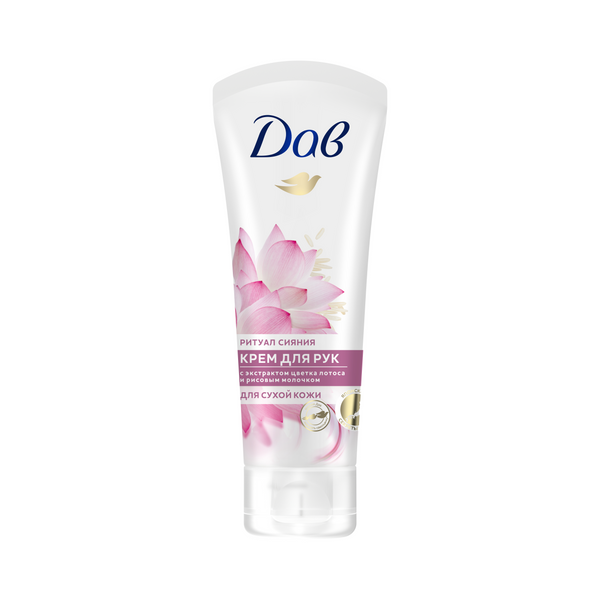 Дав крем для рук экстракт лотоса и рисовое молочко 75 млФормула единственного в своем роде крем-мыла на четверть состоит из увлажняющего крема - именно это его качество помогает защищать кожу от раздражения и сухости, которые неизбежны при использовании обычного мыла. Dove —марка, которая известна благодаря авангардному изобретению: мягкому крем-мылу. Dove любим миллионами, ведь они не содержат щелочи, оказывают мягкое, щадящее воздействие на кожу лица и тела.Удивительное по своим свойствам крем-мыло довольно быстро стало одним из самых популярных косметических средств.