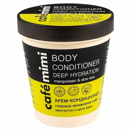 Нежный крем-кондиционер с экстрактом мангостина, маслом ши и соком алоэ вера мгновенно насыщает кожу влагой, позволяя надолго забыть о дискомфорте и чувстве стянутости.Активные натуральные ингредиенты в составе кондиционера обладают двойным действием – глубоко увлажняют кожу и препятствуют ее обезвоживанию в течение длительного времени: