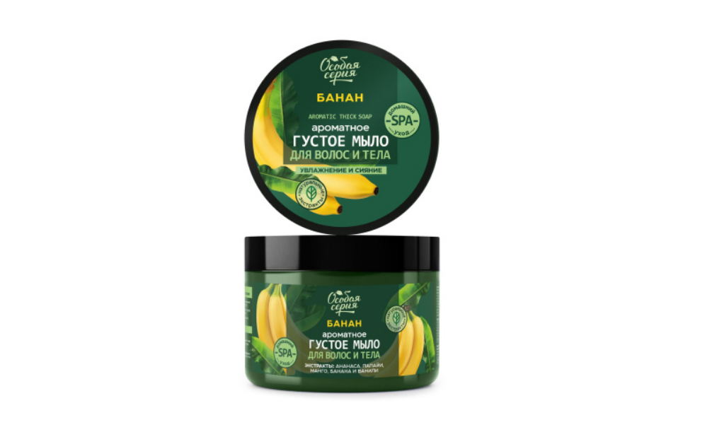 Особая серия ароматное густое мыло для волос и тела банан увлажнение и сияние 500 млГустое мыло «Особая Серия» — это универсальное средство для ежедневного ухода за телом и волосами с натуральными экстрактами, увлажняющими компонентами и превосходными яркими ароматами. Мягкая текстура мыла образует нежную кремовую пену, бережно и эффективно очищает тело и волосы.