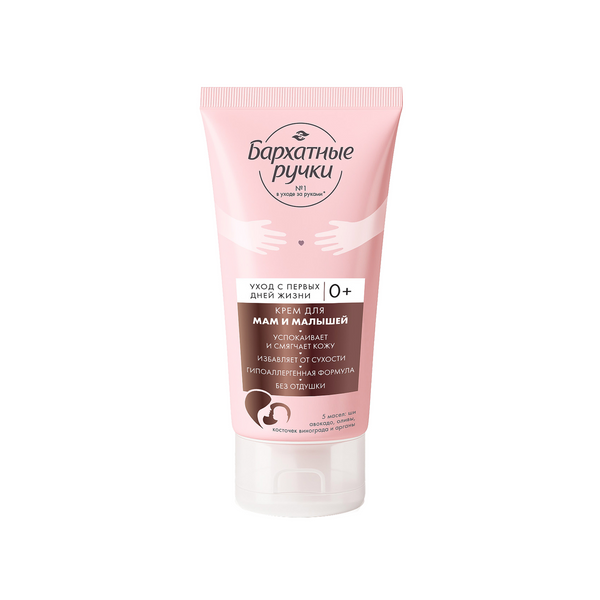 Бархатные Ручки крем для рук лица и тела для мамы и малыша 200 млКрем-лосьон для рук, лица и тела Бархатные Ручки имеет гипоаллергенную формулу без отдушки и содержит комплекс из пяти натуральных масел, пантенол и экстракт хлопка. Средство эффективно успокаивает эпидермис, обеспечивает мягкое увлажнение раздраженной кожи и избавляет от сухости, стянутости и шелушения. Подходит для самой нежной и чувствительной кожи малышей с 0 лет. Крем для рук, лица и тела идеален для повседневного ухода за кожей маленьких детей, может использоваться как крем под подгузник или как успокаивающий крем для сосков. Одобрен педиатрами, рекомендован врачами дерматологами.