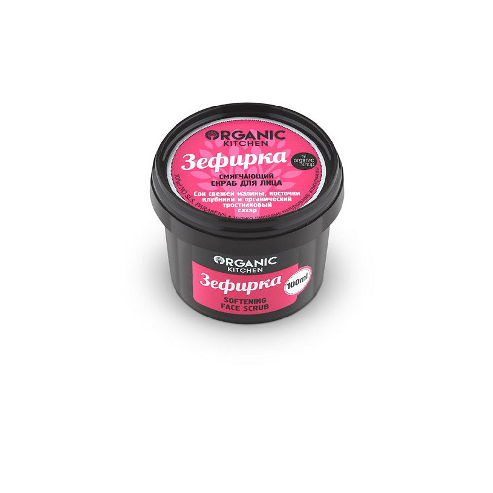 Organic Kitchen смягчающий скраб для лица зефирка 100 млВеликолепный воздушный десерт для Вашей кожи. Смягчающий скраб бережно очищает, дарит чувство нежности и комфорта. Сок свежей малины питает и насыщает кожу витаминами, косточки клубники и тростниковый сахар деликатно отшелушивают и мягко полируют кожу, делая ее удивительно гладкой и бархатистой. Порадуйте Вашу кожу сладким и полезным удовольствием.