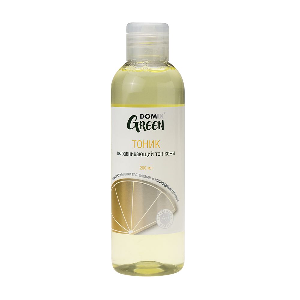Domix тоник выравнивающий цвет кожи с лекарственными растениями и серебром 200 млТоник бережно очищает кожу и обеспечивает ей полноценный уход. Экстракты петрушки и лимона питают, освежают и тонизируют кожу, оказывают легкий отбеливающий эффект. Коллоидное серебро активирует защитные функции кожи поддерживает ее естественный кислотно-щелочной баланс. Продукт клинически протестирован.