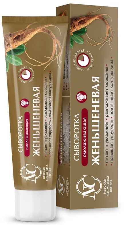 Невская Косметика женьшеневая сыворотка для лица 35млПредназначена для ежедневного ухода за кожей с признаками старения. Питает и увлажняет кожу, улучшает цвет лица, повышает упругость, подтягивает контуры лица, оказывает мгновенный лифтинг-эффект, сокращает глубину и количество морщин. Благодаря содержанию активных компонентов сыворотка питает и увлажняет кожу, улучшает цвет лица, оказывает мгновенный лифтинг-эффект спустя 15 минут, повышает упругость кожи, подтягивает контуры лица, сокращает глубину и количество морщин. В результате применения кожа становится мягкой и увлажненной, приобретает ухоженный вид, сокращается глубина и количество морщин, повышается упругость кожи, контуры лица подтягиваются, выравнивается тон кожи.