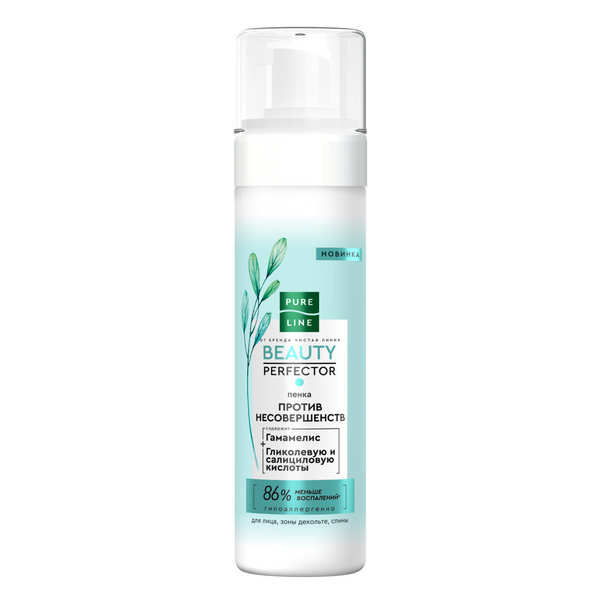 Чистая Линия пенка для лица зоны декольте спины очищающая от несовершенств кожи 180 млВысокая скорость жизни и постоянные стрессы могут стать причиной несовершенств на коже, которые проявляются не только на лице. Попробуйте бережный уход для проблемной кожи лица, зоны декольте и спины – пенку Pure Line от бренда Чистая Линия. Продукт ДЕЙСТВУЕТ КОМПЛЕКСНО: • Глубоко очищает'; • Сокращает воспаления (86% – меньше воспалений°); • Предотвращает появление новых воспалений; • Успокаивает и восстанавливает; • Не сушит и не раздражает кожу. АКТИВНЫЕ ИНГРЕДИЕНТЫ: • Экстракт гамамелиса снижает раздражение и обладает себорегулирующим эффектом. • Гликолевая и салициловая кислоты в эффективной концентрации 0,7% глубоко' очищают кожу и предотвращают появление новых воспалений. ЗОНЫ ПРИМЕНЕНИЯ: лицо, декольте, спина. Можно использовать во время душа. Нанесите небольшое количество пенки на влажную кожу лица и тела. Помассируйте и оставьте на несколько минут, а затем смойте большим количеством воды. Гипоаллергенно. Подходит для всех типов кожи, включая чувствительную, с 14 лет. Клинически доказано: 86% – меньше воспалений°.