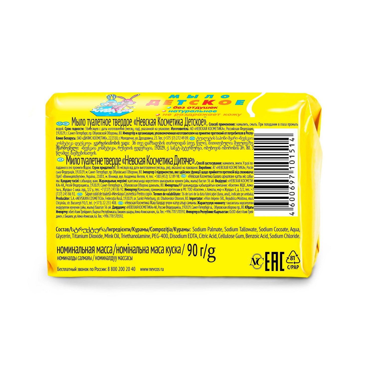 Невская Косметика туалетное мыло детское 90 гОказывает мягкое очищающее воздействие на кожу не только детей, но и взрослых, подходит для чувствительной кожи. Не сушит и не раздражает. Содержит глицерин и норковый жир. Изготовлено из сырья высочайшего качества, не содержит красителей и отдушек