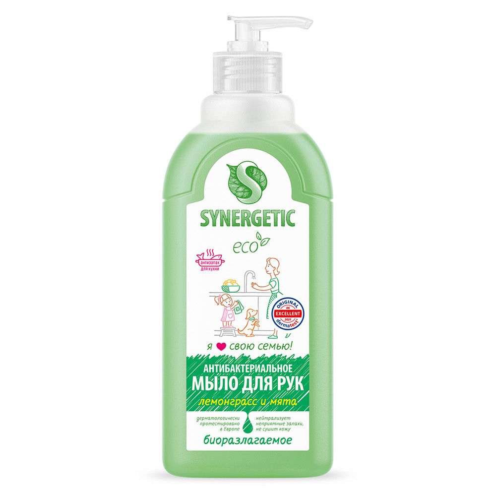 Synergetic жидкое антибактериальное мыло лемонграсс и мята 0,5 лАнтибактериальное увлажняющее жидкое мыло SYNERGETIC "Лемонграсс и мята" эффективно очищает кожу от любых загрязнений даже в холодной воде. Особенно эффективно против неприятных запахов. Комбинация растительных К-тензидов, морской соли и натуральных эфирных масел лемонграсса, мяты, чайного дерева, эвкалипта и тимьяна обеспечивает длительный антибактериальный эффект с защитой от микроорганизмов на 99,9%. Растительный глицерин обеспечивает интенсивное увлажнение кожи. Комплекс витаминов A, E, F повышает сопротивляемость кожи неблагоприятному воздействию внешней среды. Мультифункциональный компонент натурального происхождения софоролипид мягко очищает и сохраняет естественный микробиом кожи. Гипоаллергенное средство подходит для чувствительной кожи.