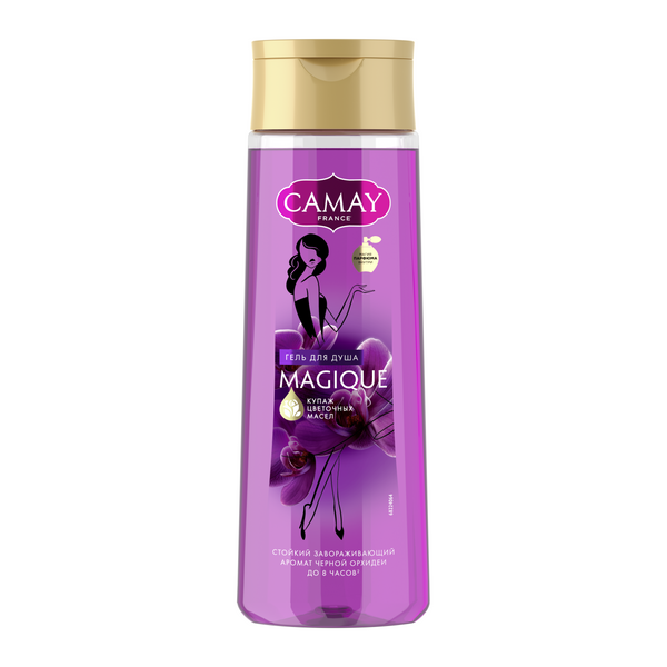Camay гель для душа магическое заклинание 250 млНеобычайная стойкость аромата CAMAY Магическое заклинание Этот чувственный, завораживающий аромат геля для душа Camay Магическое заклинание собрал в себе нотки редкой черной орхидеи и насыщенные тона темных цветов. Попробуйте настоящее произведение парфюмерного искусства. В верхних нотах этого экзотического аромата вы услышите игривый аромат красной смородины. Средние ноты насыщены теплым, глубоким и терпким запахом редкого цветка черной орхидеи и насыщенных тонов темных цветов. А базовые ноты будут раскрываться на вашей коже еще длительное время после душа чувственным и завораживающим ароматом сандала и драгоценной амбры. Раскройте все грани своей чувственности с помощью магического сочетания ароматов Camay Magique. Приятная текстура геля хорошо вспенивается и мягко очищает кожу. А благодаря технологии Fragrance Pearls™ в составе геля для душа, его пленительный аромат остается на коже до 8 часов после душа!* Поэтому куда бы Вы ни пошли, Вы сможете оставить после себя незабываемое впечатление! Француженки всегда были иконами красоты для всего мира. Но помимо изысканного стиля, элегантности и женственности, их секрет также заключается в исключительном парфюме.
