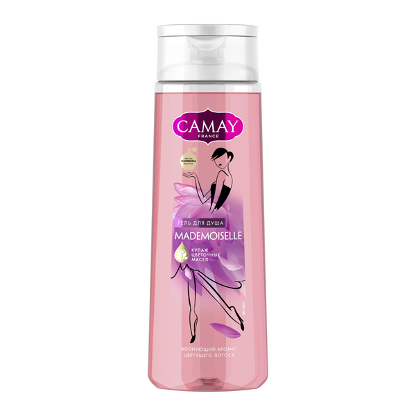Camay гель для душа мадемуазель 250 млИгривое настроение CAMAY Мадемуазель С коллекцией Camay Mademoiselle Вы ощутите игривый аромат цветка лотоса и сладкой карамели, которые смешались для ощущения праздника жизни каждый день! Такие разные и неожиданные по сочетанию, как женские эмоции – спокойный и гармоничный аромат цветущего лотоса в верхних нотах и сладостная ваниль в сердце аромата завершаются неожиданным и пряным ароматом специи кумарина. Гель для душа Camay Мадмуазель с игривым сладким ароматом лотоса, бережно очищает кожу, обеспечивая незабываемое ощущение свежести на весь день. Благодаря насыщенной кремовой текстуре средство с легкостью превращается в нежную пену, полностью смывается водой, позволяя коже дышать, делает ее нежной и благоухающей. А формула помогает сохранить естественную увлажненность кожи и предотвращает возникновение чувства сухости и стянутости после использования. А соблазнительный аромат поднимает настроение, придаёт сил и обаяния. Француженки всегда были иконами красоты для всего мира. Но помимо изысканного стиля, элегантности и женственности, их секрет также заключается в исключительном парфюме.