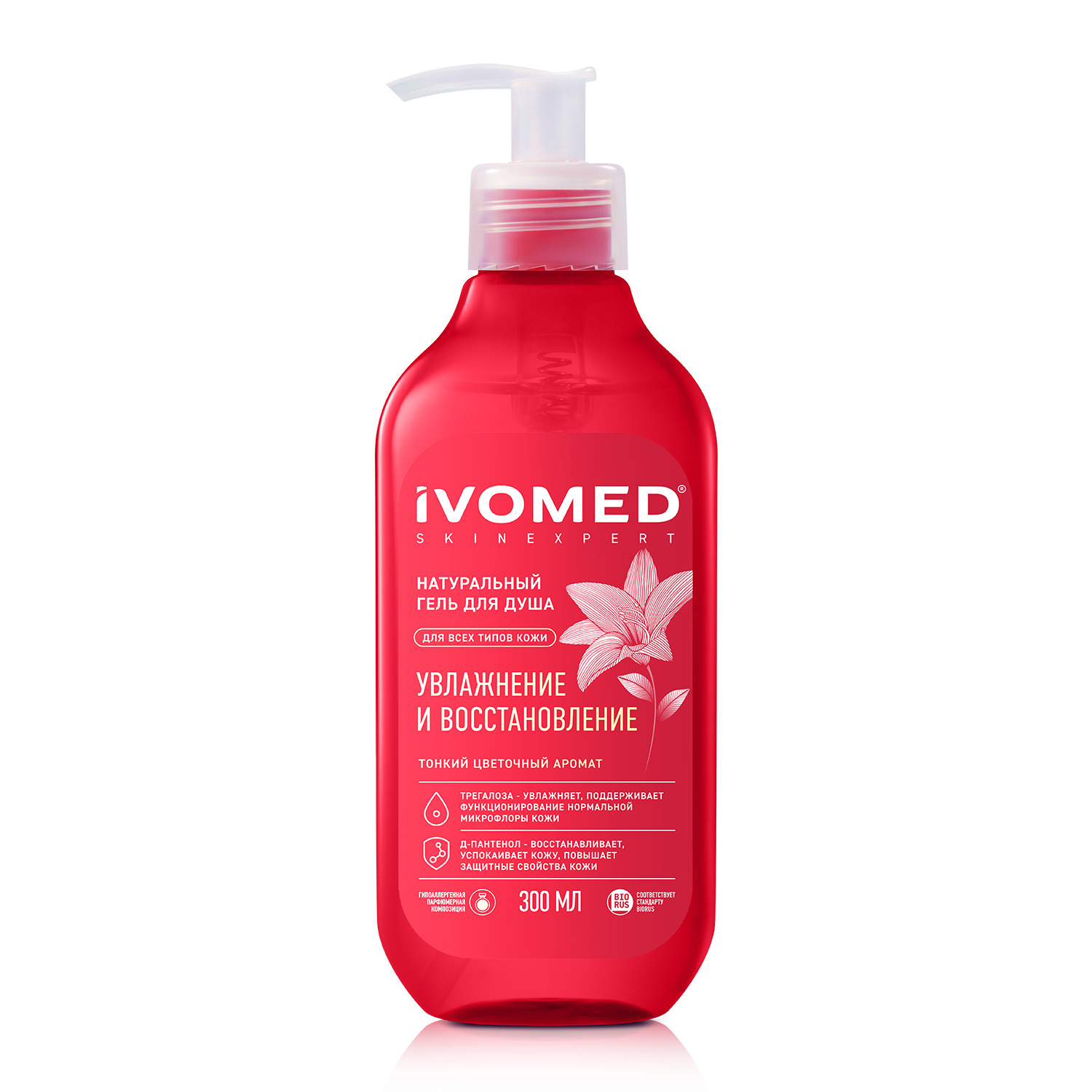 IVOMED гель для душа увлажнение и восстановление 300 млНатуральный гель для душа мягко очищает, увлажняет и поддерживает функционирование нормальной микрофлоры кожи. Д-пантенол в составе восстанавливает, успокаивает кожу, повышает защитные свойства. Создан на мягкой основе, содержит в составе гипоаллергенную отдушку.