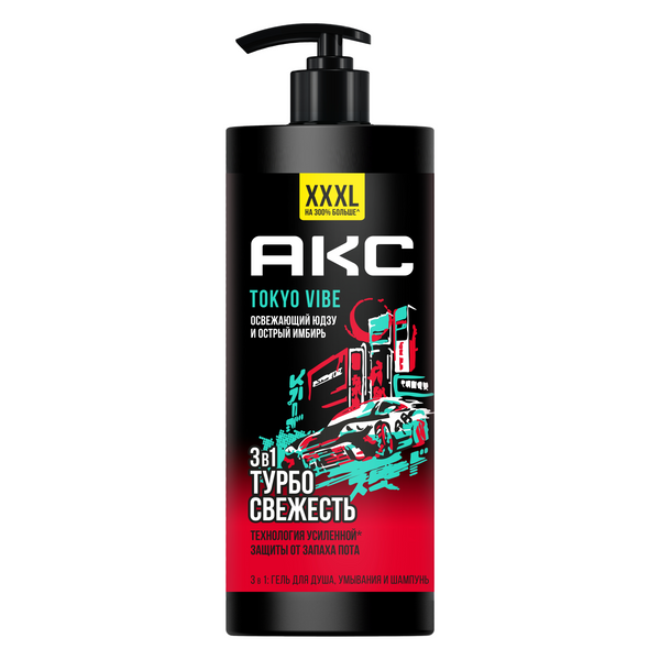 Акс гель для душа шампунь парфюмированный 1000 млГель для душа и умывания лица мужской, шампунь для волос 3 в 1 Акс разработан на основе технологии усиленной* защиты от запаха пота и содержит в составе формулу с пребиотиками' растительного происхождения, а также увлажняющие компоненты. Средство для умывания лица подходит для ежедневного применения. Шампунь для волос мужской имеет сочный аромат освежающего юдзу и острого имбиря. Гель для душа мужской дерматологически протестирован, имеет удобный формат флакона и объем 250 мл, который удобно взять с собой. *В портфеле бренда Акс. Отмечены в составе' – пребиотики способствуют поддержанию нормального микробиома на поверхности кожи, что помогает подавлять размножение бактерий, образующих неприятный запах. Не является лекарственным средством.