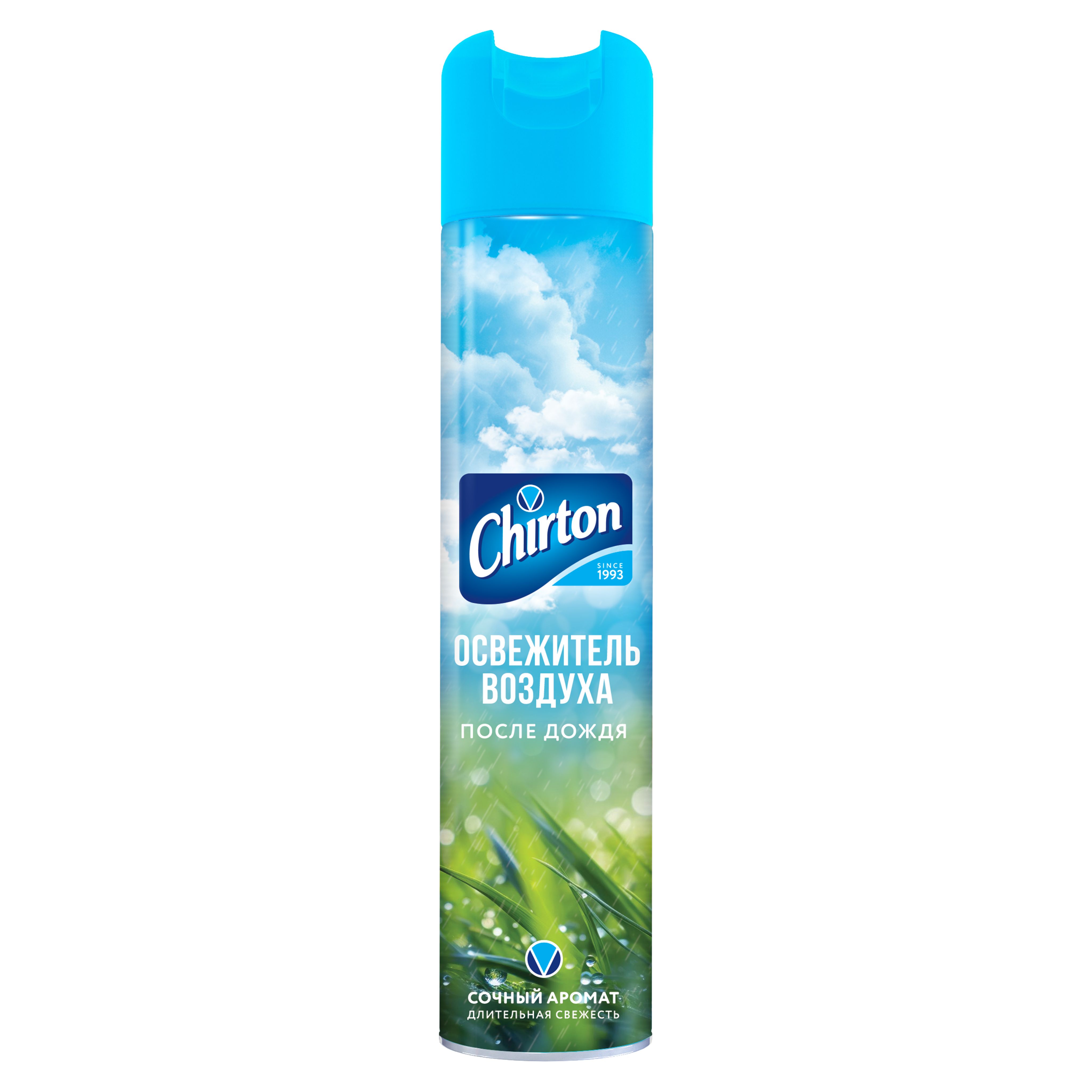 Chirton освежитель воздуха после дождя 300 млОсвежитель воздуха Chirton легко устраняет неприятные запахи, надолго наполняя дом неповторимыми нежными ароматами.