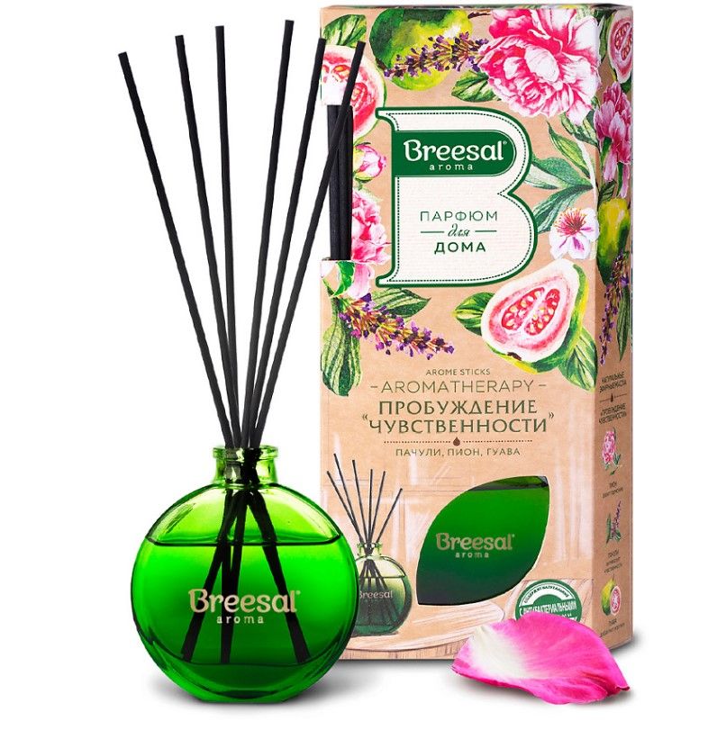 Breesal декоративный ароматизатор arome sticks гармония красоты пробуждение чувственностиДиффузор ароматический с натуральными эфирными маслами Aromatherapy от Breesal поможет устроить сеанс ароматерапии и использовать ее целительные свойства прямо у вас дома. Просто выберите свой ароматизатор для дома – тонизирующий, расслабляющий или пробуждающий чувства – и позвольте ему творить чудеса! «Пробуждение чувственности» с натуральным эфирным маслом пачули, сладковатыми вкраплениями экзотической гуавы и шлейфом нежного пиона активирует чувственное начало, пробудит стремление к красоте и гармонии, восстановит внутренний баланс. Чтобы эфирные масла для дома раскрыли все свои свойства, просто поместите палочки во флакон с ароматической жидкостью и уже через несколько часов они наполнят комнату своей энергией, который будет вдохновлять вас до 45 дней. Премиальная упаковка аромадиффузора – стильный флакон изумрудного цвета, чёрные палочки из полиэфира, коробка из крафтового картона – делают ароматический диффузор Aromatherapy отличным подарком и стильным предметом интерьера. Дарите гармонию себе и тем, кого вы любите!