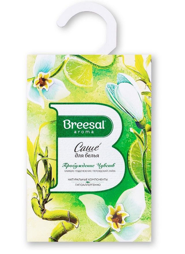 Breesal harmony ароматическое саше пробуждение чувств 20 гАроматическое саше для белья Breesal – это компактный и деликатный способ придать гардеробной, шкафу или комоду легкий и ненавязчивый аромат. Просто разместите их на полке или штанге с помощью специального крючка и радуйте себя прекрасным настроением каждый раз, когда открываете шкаф, застилаете белье или надеваете любимую вещь. Специально для этого мы выбрали утонченные, но стойкие композиции от ведущих парфюмерных домов мира, которые будут радовать вас в течение целого месяца. Саше ароматическое для шкафа «Пробуждение чувств» наполнит пространство утонченным аккордом из нот древесно-травянистого бамбука, хрупкого подснежника и освежающего персидского лайма. При этом саше на 94% состоит из натуральных компонентов и гипоаллергенно, что особенно важно для людей с повышенной чувствительностью. Мы также позаботились о безопасности вашей одежды: наши аромасаше надежно упакованы в два плотных бумажных пакета с привлекательным дизайном и не оставляют следов на ткани.